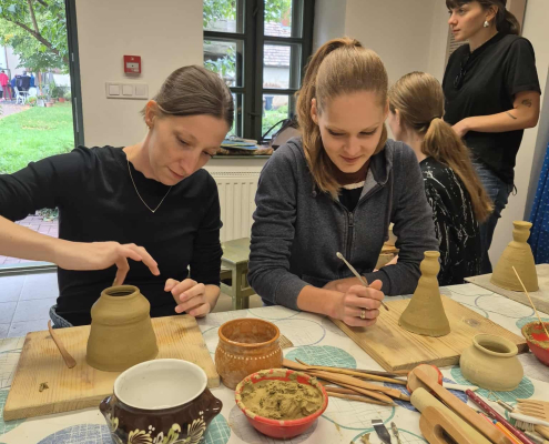 Az első nap Pannonhalmán kezdtünk, az apátsági arborétumban egy gyógynövényes szakvezetésen vettük részt. Nagyon hangulatos volt a séta, sok érdekességet hallottunk, közben pedig bőven jutott idő beszélgetésre is. Ezután Zircen ebédeltünk, majd a Reguly Antal Múzeumban régi mesterségekkel ismerkedtünk meg. A korongozás és az agyagozás igazi közös élményt adott, sok nevetéssel és kreatív pillanattal.