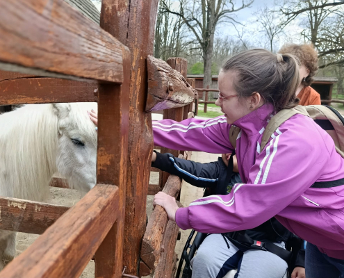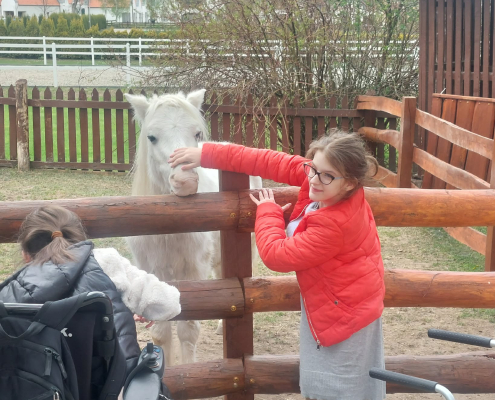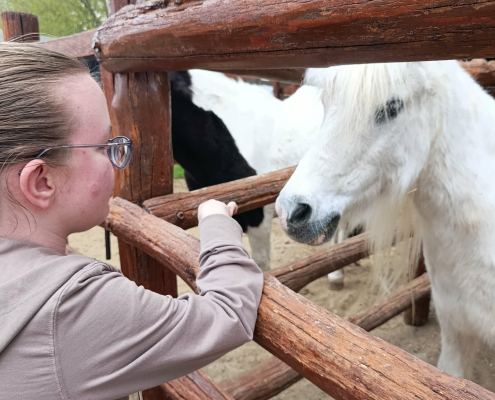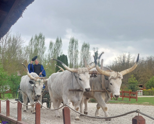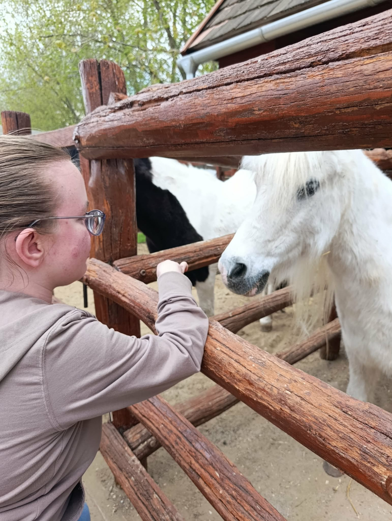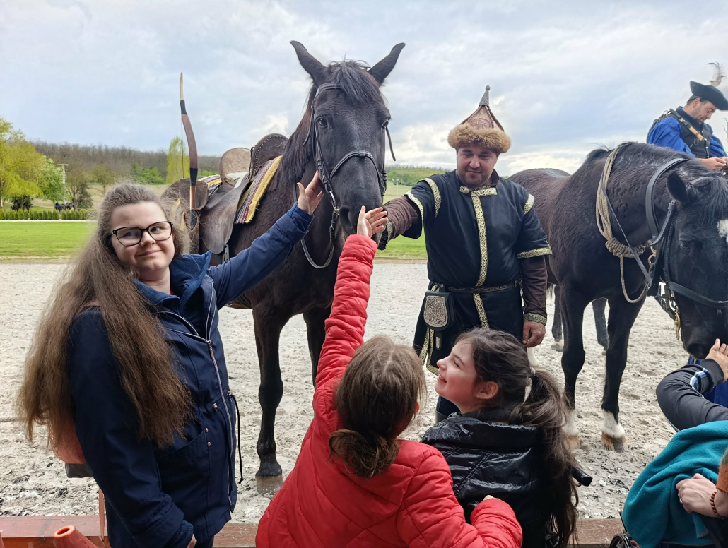 A program következő állomásaként a falusi udvart jártuk be, ahol a tanulók közelről is megismerkedhettek különféle háziállatokkal. A vidám hangulatot csak fokozta, hogy a látott állatokhoz kapcsolódó népdalok – mint például a „Debrecenbe kéne menni”, a „Szász liba egy sorba” vagy a „De szeretnék páva lenni” – spontán módon felcsendültek, és közös énekléssé alakultak. Külön örömöt jelentett számunkra, hogy megsimogathattuk a barátságos lovakat.