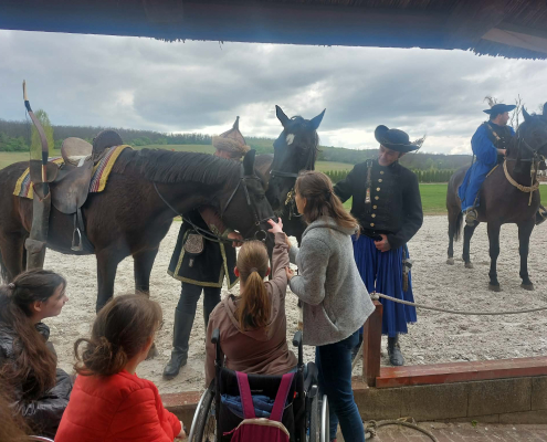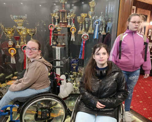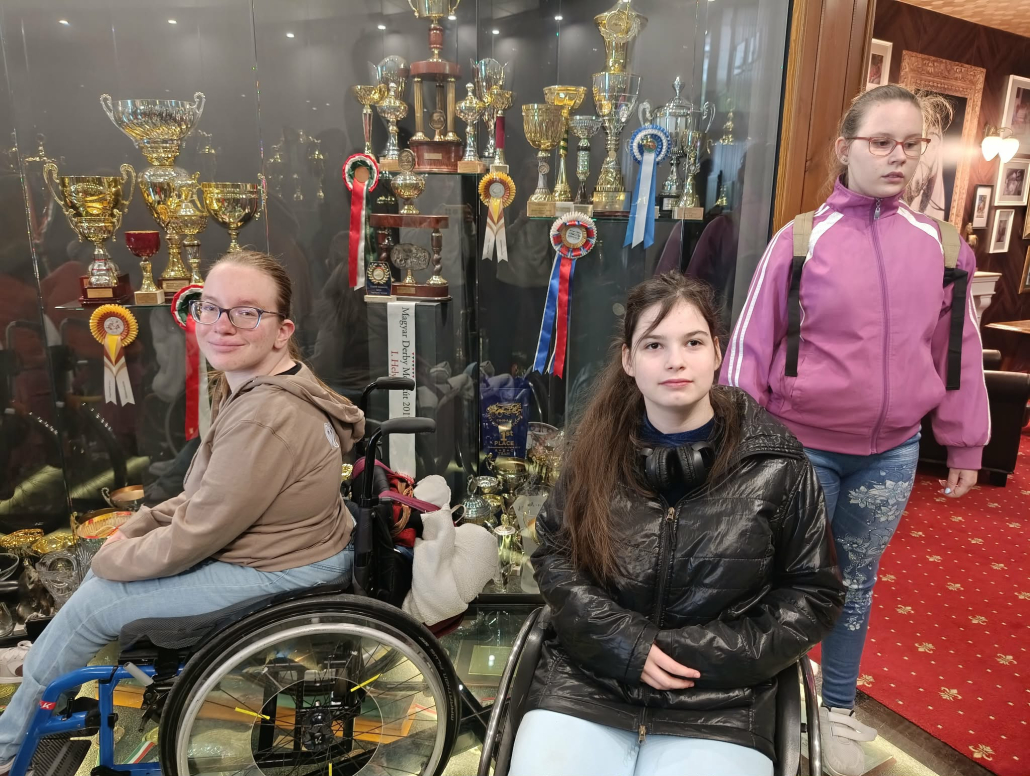 Megérkezésünkkor kedves fogadtatásban volt részünk: üdítővel és finom aprósüteményekkel köszöntöttek bennünket. Ezt követően egy rövid, de tartalmas program várt ránk a Lázáreumban, ahol egy ismeretterjesztő kisfilm segítségével betekintést nyerhettünk a fogathajtás történetébe. A kiállítótérben megcsodálhattuk a testvérpár rangos díjait és elismeréseit is.